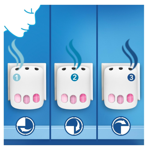 Ambi Pur 3Volution intelligente programmering plug Vleugje Bloesem verwijdert voortdurend geurtjes en wisselt tussen 3 elkaar aanvullende parfums voor een frisheid die je blijft ruiken. Gaat tot 90 dagen lang mee (indien 12 uur per dag gebruikt op de laagste stand). Ontdek de schoonheid van Vleugje Bloesem nu met digitaal gecontroleerde parfumafwisseling. Frisse geur die zich verder verspreidt en je kamer vult met parfum. De parfum Vleugje Bloesem is geïnspireerd op de frisheid van delicate zachte rozenblaadjes. Laat je overspoelen door een gevoel van rust terwijl deze zuivere, zachte parfum de lucht vult. Met gewone geurverspreiders wennen we snel aan geurtjes en vallen ze niet meer op. De Ambi Pur 3Volution vernieuwt de frisheid door voortdurend en automatisch elke 45 minuten tussen 3 complementaire, kwaliteitsvolle parfums af te wisselen. Gebruik de Ambi Pur 3Volution navullingen met de 3Volution elektrische verdeler om je huis te vullen met een frisheid en parfum die je dag na dag, week na week blijft ruiken. Met 3Volution kun je ook de parfumsterkte aanpassen, zodat je de sfeer kunt creëren die je wilt, wanneer je dat wilt.