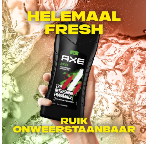 - Ruik wel 12 uur lang onweerstaanbaar met de verbeterde AXE Africa Douchegel