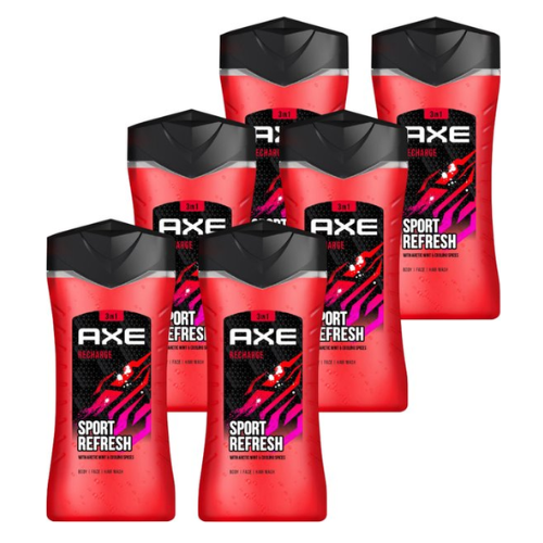 Axe 3-in-1 Douchegel, Facewash & Shampoo - Sport Recharge Voordeelverpakking - 6 x 250 ml