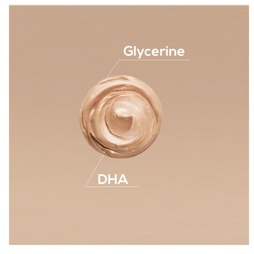 Aqua, Glycerin, Dihydroxyacetone, Propanediol, Polyglyceryl-4 Caprate, 1,2-Hexanediol, PEG-40 Hydrogenated Castor Oil, Coco-Glucoside, Citric Acid, Phenoxyethanol, Parfum, CI 14700, CI 19140, CI 42090.