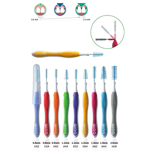 De GUM Trav-ler Ragers zijn verkrijgbaar in 10 verschillende maten, variërend van een borsteldikte van 1.6 mm tot 10 mm.