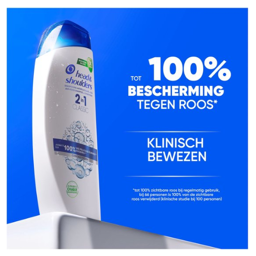 Head & Shoulders 2-in-1 Classic Anti-roos Shampoo voor elk haar- en hoofdhuidtype werkt zelfs tegen hardnekkige roos. Een shampoo geschikt voor dagelijks gebruik voor zowel mannen als vrouwen, en met onze Microbiome Balance formule die de hoofdoorzaak van roos aanpakt en het microbioom van de hoofdhuid in balans houdt. Werkt zowel tegen zichtbare als onzichtbare roos door 2x meer beschermende ingrediënten vrij te geven die zich in de poriën vastzetten om uiteindelijk te voorkomen dat hardnekkige roos terugkomt. Deze 2-in-1 shampooformule bevat 25% meer voedende bestanddelen dan de gewone Head & Shoulders shampoo, is klinisch bewezen, dermatologisch getest en heeft een pH-gebalanceerde formule.