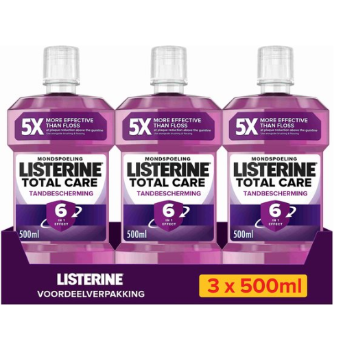 - LISTERINE Mondwater Total Care mondwater met een zesvoudige werking – voor de uitgebreide mond- en tandverzorging en verbeterde mondhygiëne