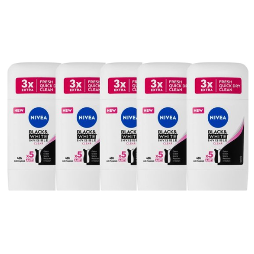 Nivea Deo Stick - Invisible For Black & White Clear - Voordeelverpakking 5 x 50 ml