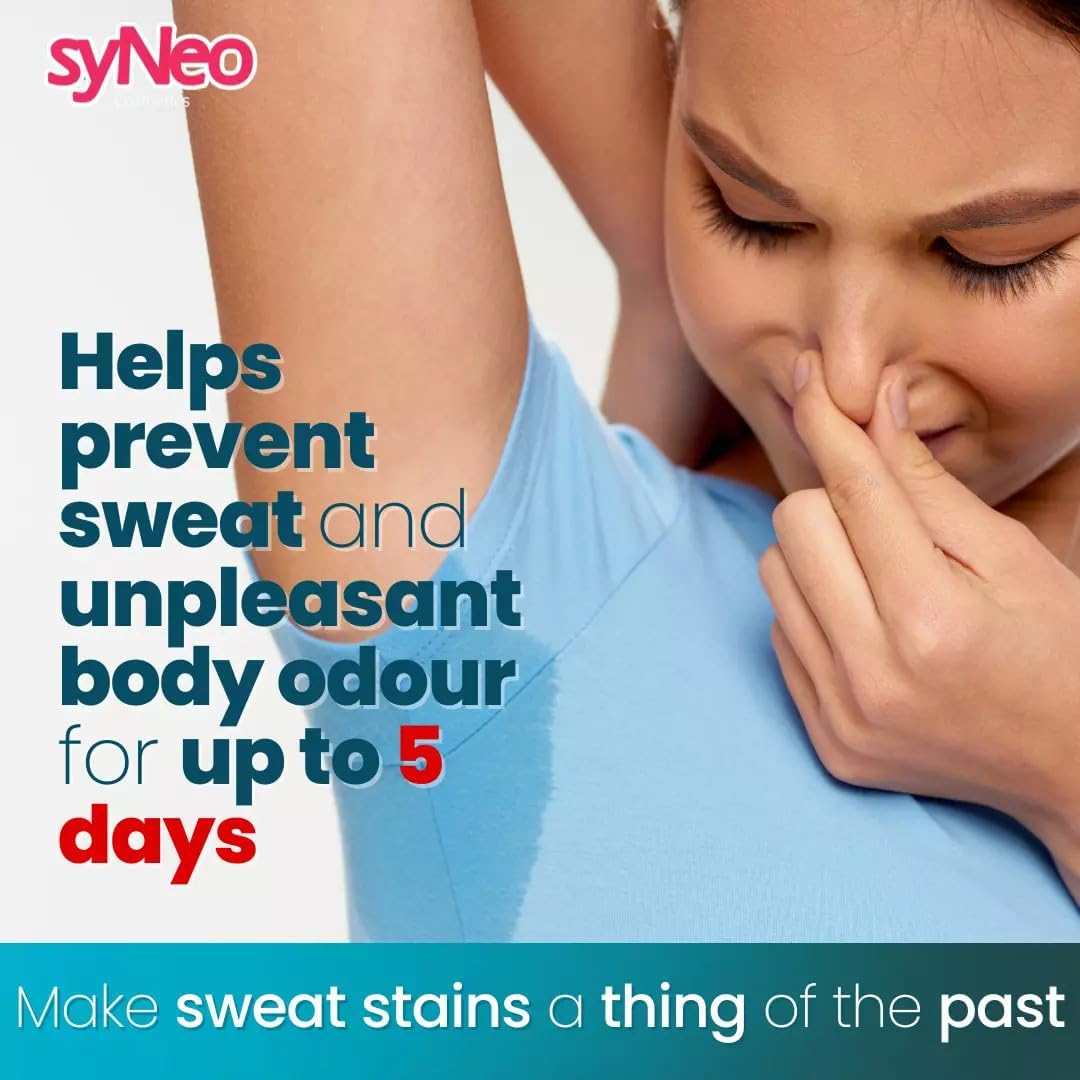 - ✅MEER KWALITEIT VAN HET LEVEN: U hoeft zich niet langer te verstoppen, maar kunt eindelijk weer de felle kleuren en mooie kleren dragen die u wilt! Met syNeo 5 hoeft u zich niet langer te schamen voor grote zweetvlekken, plakkerige kleren of stinkend zweet, maar kunt u zich verheugen op een leuke dag. Je kunt het vanaf nu wel stellen zonder je topjes meerdere keren per dag te verwisselen!